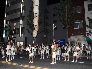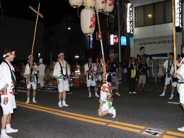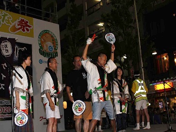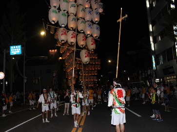 一斉万灯 腰によっと! 応援団の皆様 肩にも乗せちゃいます!
